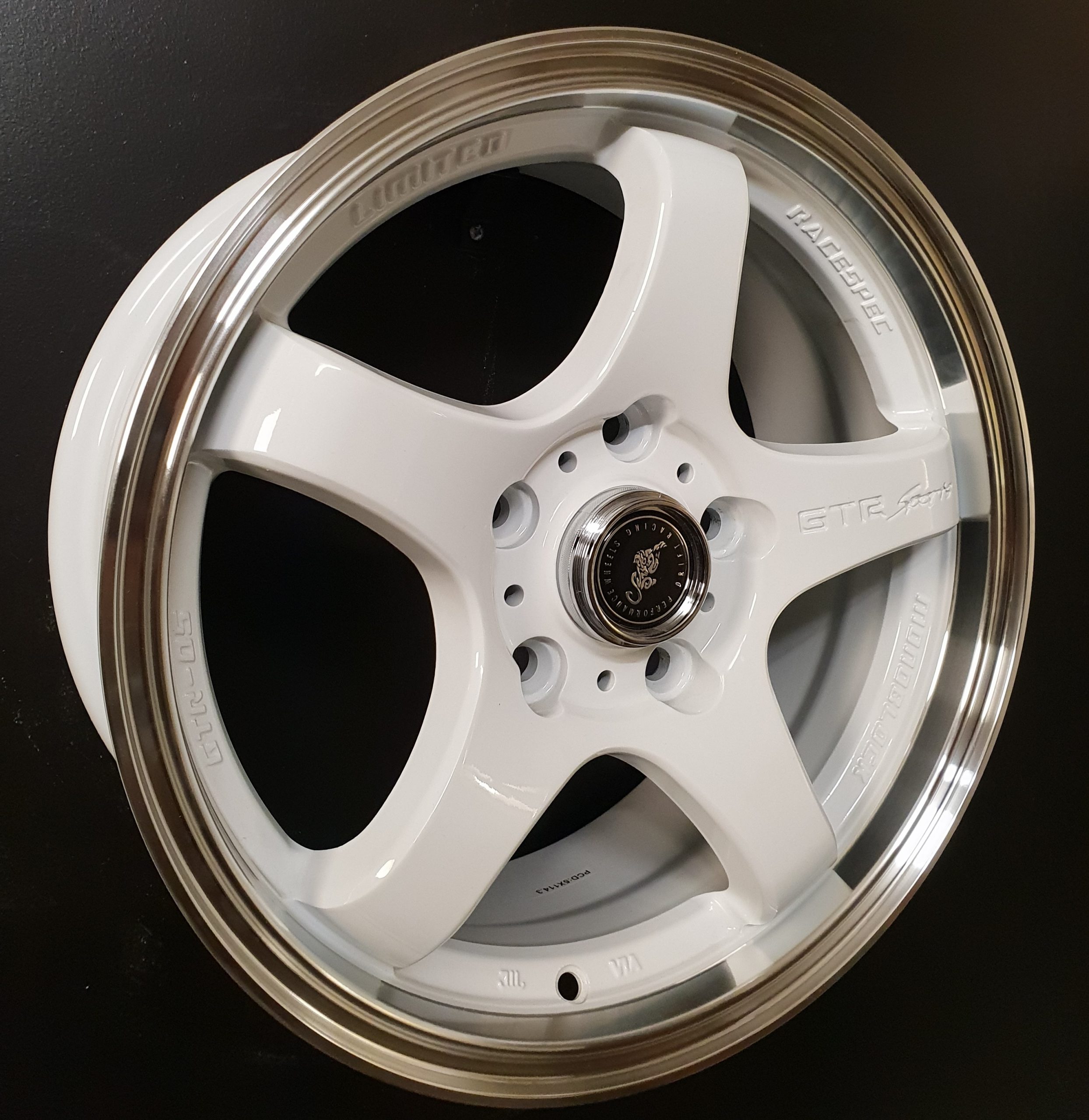15x6.5 White with machined lip. GTW (Grip Tyres & Wheels) has built a reputation for our steadfast commitment to service & Quality Alloy wheels at competitive prices. We offer the latest wheel designs. From distinctive, head turning designs to the most buzz worthy styles. Change up to GTW wheels at a fraction of the price. - For FREE advice just give us a call -